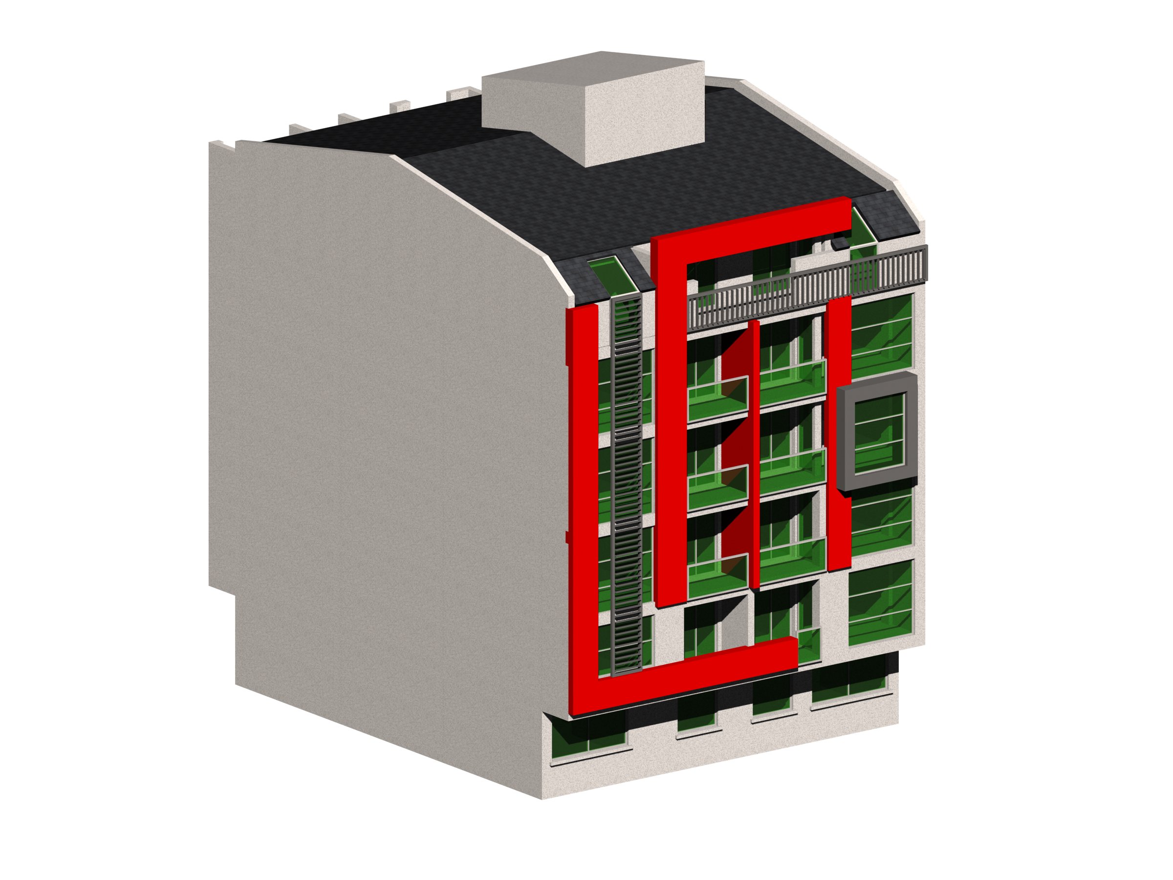 Поткровје: еден еднособен, два двособни и еден трособен стан.